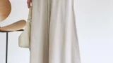 ウエストからミドルヒップまで程よくマークしたAラインのデニムスカート。ストレッチ性のあるポケット袋布を使用しているのでウエストを程よくカバーします。スリットも入っていて、素材の軽さもあり足さばきもよい履き心地です。