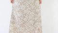 ボリュームのあるフレアスカートにショート丈のカーディガンを合わせてエレガントな着こなしに。お花モチーフのビジューはフェミニンかつドレッシーな印象を与えます。