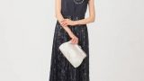 華奢な肩紐とベアトップ型のデコルテラインが今年らしいデザイン。