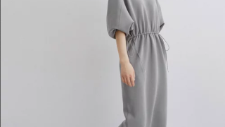 メンズライクな直線的なシルエットと、フロントに施したタック、フロント斜め切りのポケットなど、スラックスのような雰囲気に。