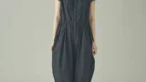 キャミソール型でどんなインナーともマッチする縦長シルエットのストライプロンパース