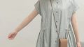 抜け感をプラスするスキッパーネックと、袖口のタックがデザインのポイント。