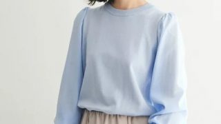ViS ニット プルオーバー。ツヤ感のあるオーガンジー素材を袖のデザインに取り入れたニットプルオーバーです。袖のオーガンジーを二重にし、透けすぎないように仕上げています。パフスリーブでふんわりしたフォルムでフェミニンな雰囲気を演出してくれます。ニット×ツヤ感のあるオーガンジー素材。ベーシックカラーに柔らかなブルーをプラスしました。
