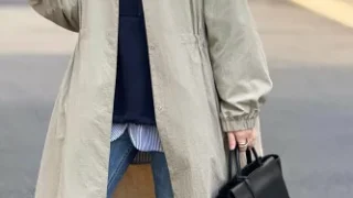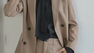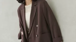 このセットアップは気に入って2色買いました。最初はコロナの前に買って、外出制限で来ていくところもなくそのままだったのですが、秋口から来てみるととでスッキリ見えて、パールのボタンを後ろにして着ると更に効果的です。最初はネイビー、追加でベージュを購入しました。腰周りも着痩せして見えます。