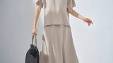肌なじみの良い素材感と風合いを活かした、高見えスカートが登場。エアリーなロングスカートはランダムなタック使いにこだわり、ふんわりと広がるフレアデザインに仕上げました。上品な光沢と美しいドレープ性が特徴のコットンシルクを使用。コンパクトニットやカットソーをタックインするスタイルはもちろん、同素材のブラウス(商品番号:RA35-23C505)とのスタイリングは、ワンピース見えを叶えるセットアップとしても活躍します。