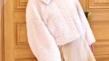 スタンドカラーで上品に見せつつ、デコルテの肌見せでさりげない色気も加味。フリル仕様になったスイートなフレンチスリーブには、二の腕カバー効果も期待できます。