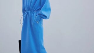 軽くて張り感のある、ポリエステルのスムース編みニット。ふんわりとした袖のフォルムやウエストのドロストデザインが魅力の、リラックス感あるロングワンピース。サイドのストッパーやバックジップ、全体に施された振りミシンなどがアクセントになっており、身幅から裾にかけてのタイトシルエットが、スタイルアップや着痩せ効果を叶えてくれる一着。